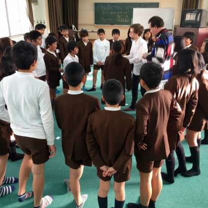 6年1組のイングリッシュ・ウィークのアクティビティの様子です。今日はマジックEを習いました。子どもたちは講師の先生とオールイングリッシュでゲームをしました。