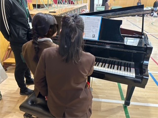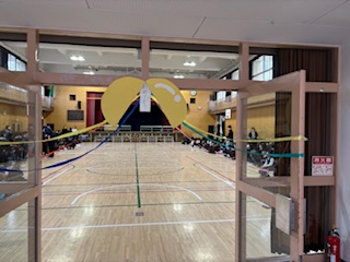 卒業を祝う会の準備が整いました。6年生が入場の時に5年生がピアノも弾きます。