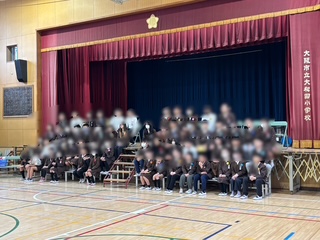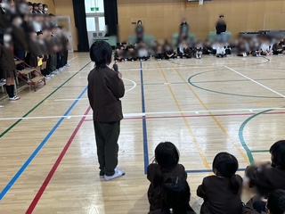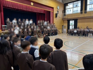 6年生はひな壇に並びました。5年生の代表委員会が司会をしていきます。