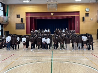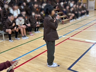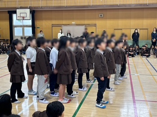 2年生は6年生の前に広がって歌を歌いました。司会は5年生が交代しながらしっかりと進めていきました。