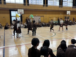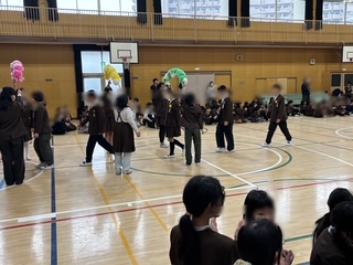 素晴らしい卒業を祝う会になりました。6年生がアーチをくぐって退場していきます。
