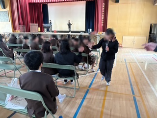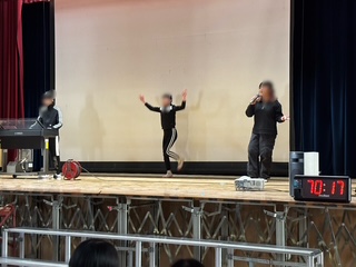 6年生のお楽しみ、茶話会です。ライブが盛り上がっています。
