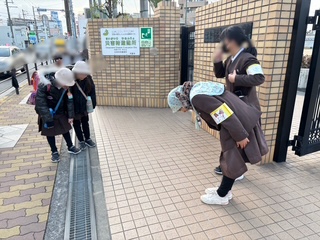 あいさつ週間も今日が最後です。6年生の代表委員会の子どもたちが正門に立っています。これからもあいさつをしていきましょう。