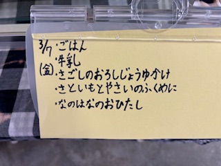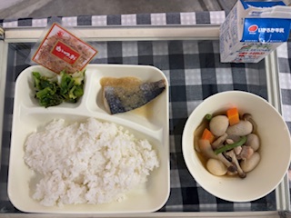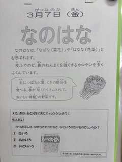 今日の給食には、菜の花のおひたし、さごしのおろし醤油かけがでました。
