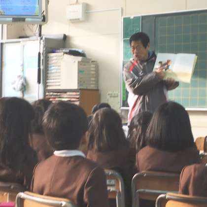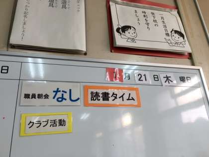 2学期から開始した、読書タイムは三学期も続いて実施しています。今朝は1年1組に6年1組担任の大西先生がゲストティーチャーとして登場です。