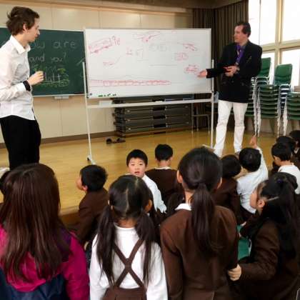 イングリッシュ・ウィーク4日目です。2時間目は2年2組の児童がアクティビティを受けました。子どもたちは積極的に講師の先生の問いかけに答えています。