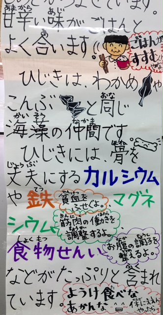 今日の献立は、筑前煮、ひじき豆、キュウリのかつお風味、ごはん、牛乳です。