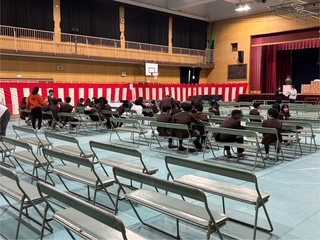 写真上は作業を終えた5年生です。本当によくがんばって準備をお手伝いしていました。