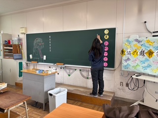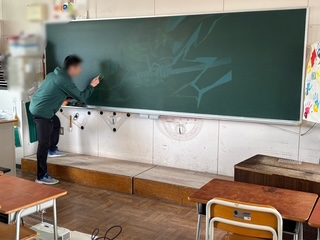 写真中、下は黒板に何かをかいている担任です。明日、卒業生が黒板を見るのが楽しみですね。