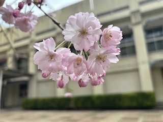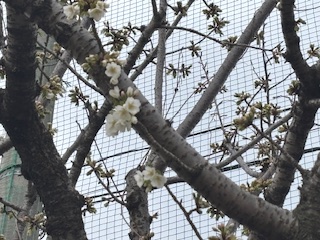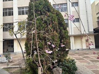 校庭の桜が咲き始めました。写真中と下は創立150周年記念のしだれ桜です。