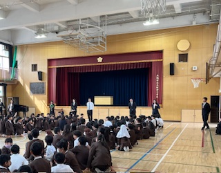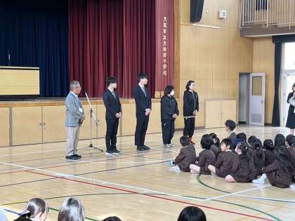 2年生から6年生が体育館に集まり、着任式・始業式を行いました。着任式では、転入生の紹介や着任した教職員の紹介をしました。始業式では、校長より「こんな子どもになってほしい」3つの願いの話をしました。担任発表を静かに聞き入る姿から子どもたちのドキドキ、わくわくした気持ちが伝わってきました。