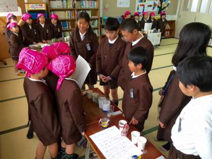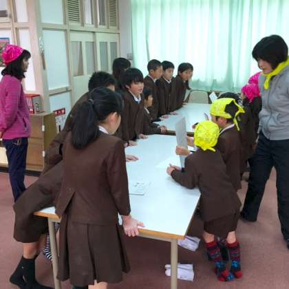 図書室は1年生が「木のみの けんだま ランド」のお店です。お客様にしっかり大きな声で説明できました。