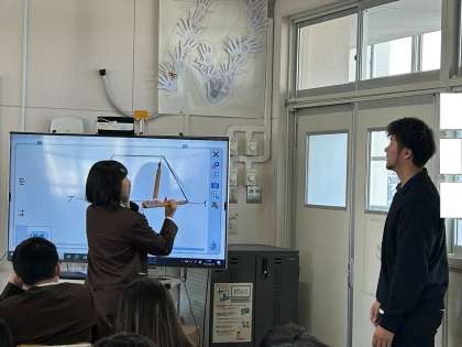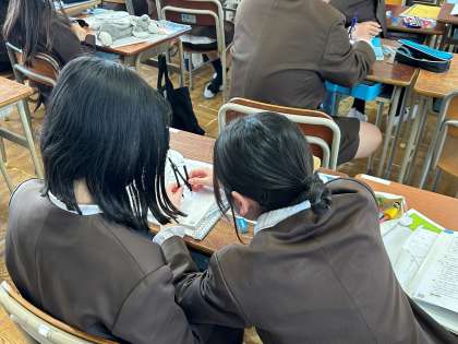 「対称な図形」の学習では、コンパスを使って、線対称な図形をかく問題に取り組みました。隣の友だちとかき方を教え合ったり、クラス全体で考えを共有したりしました。学び合うクラスの雰囲気は優しく、温かさがあふれていました。