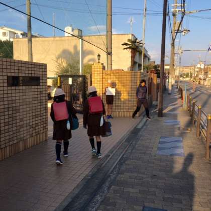 おはようございます。週末からの冷え込みも今朝がピークです。児童が登校する時間の気温はー3度でした。その冷え込みの中、運営委員会が今月も「あいさつ」運動が始まりました。