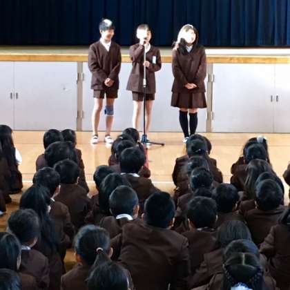 最後に運営委員会さんが、今週の「あいさつ運動」のことについて、給食委員会さんからは「給食週間」について話してくれました。