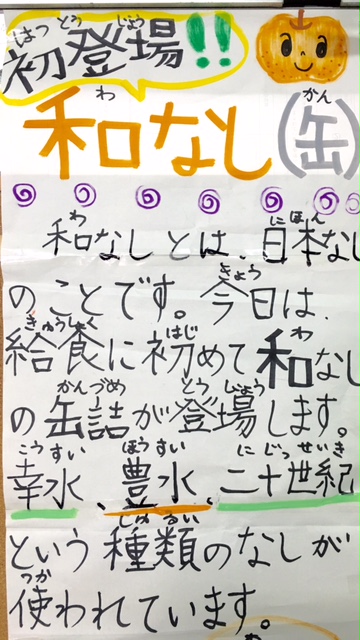 今週は「給食週間」です。日頃は担任の先生か給食を食べますが、今日は給食調理員の北川さん(1-1)、川口さん(1-2)、校長先生(4-1)、川村先生(4-2)が交流給食で、各教室で子どもたちと給食を食べます。