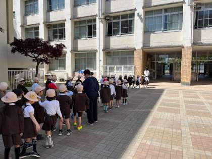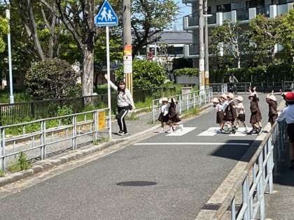 1年生のみんなも右見て、左見て、しっかりと安全を確認して横断していました。