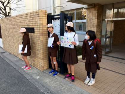 月曜日からはじまった運営委員会の「あいさつ運動」の様子です。昨日より少しましになりましたが、それでも朝は冷え込みます。