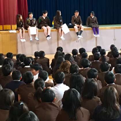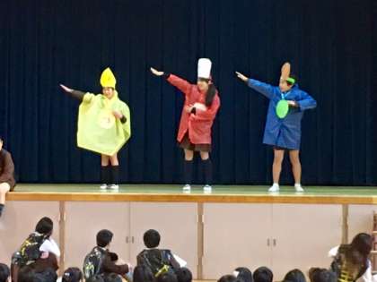 給食調理員さんへの感謝状贈呈に続いて、給食委員会の皆さんが食育劇を演じてくれました。