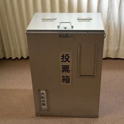 選挙の時に、実際に大和田地域で使用している投票記載台、投票箱なども見せていただきました。
