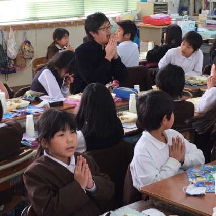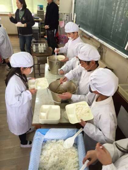 今日の交流給食の様子です。3年2組は森先生が教室に来てくださいました。一緒に楽しくいただきます。