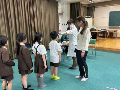 校医先生(眼科)に来ていただき、眼科検診を行いました。受診が必要な場合は、手紙を持ち帰ります。早めに病院へ行き、受診をお願いします。