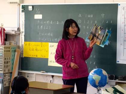 木曜日の朝は「読書タイム」です。今朝は、6年2組の教室に、1年生担任の越智先生が絵本の読み聞かせに来てくれました。
