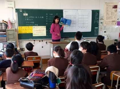 越智先生は、ウルグアイの元ムヒカ大統領の国際会議での演説を題材にした「世界で最も貧しい大統領」を読み聞かせしてくれています。