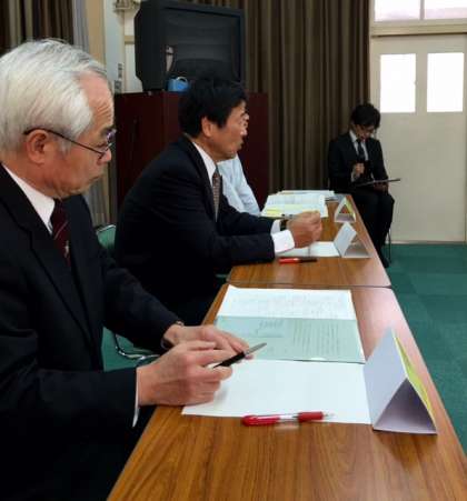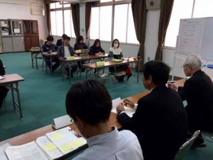 研究授業を受けて、全教育が集まり研究協議会が始まりました。