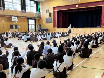 全校朝会で、校長より「いじめは、どんな理由があっても、人間として絶対に許されないこと」について具体例を挙げながら話をしました。
