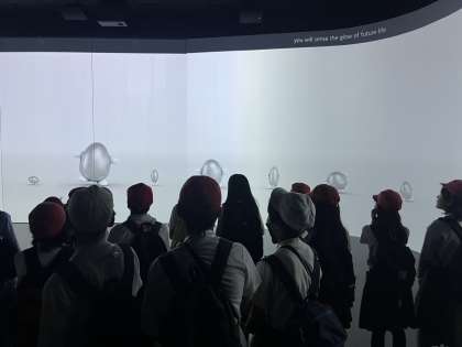 電力館 可能性のあるタマゴたちの見学です。電力やエネルギーをテーマにこれから先の未来を想像させる展示です。