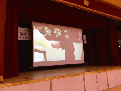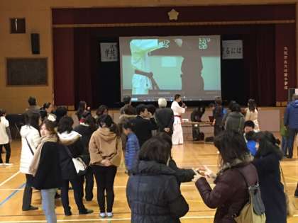 ワークショップは、大型スクリーンの映像と宮澤天道様の実技指導で、進められています。とてもわかりやすいです。