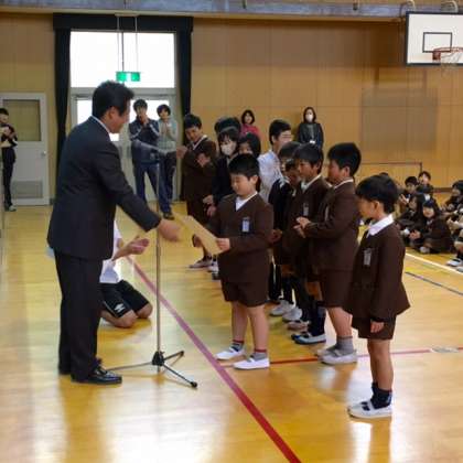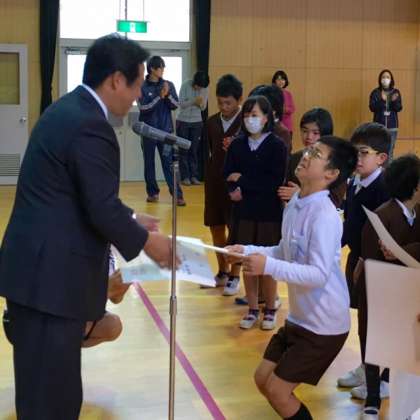 校長先生から、児童絵画展の賞状を伝達してくださいました。子どもたちはとても頑張っています。