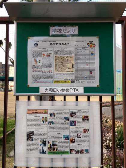 おはようございます。正門横の掲示板です。本校保護者の皆様だけでなく、地域の方々にも大和田小学校の教育活動を知っていただくことが出来ています。