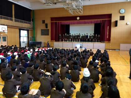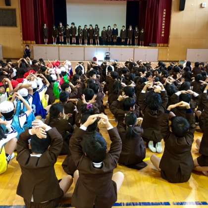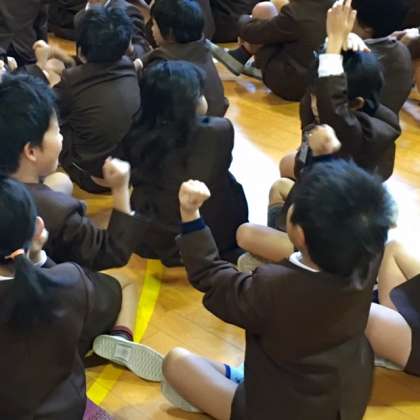 今朝の「なかよし集会」では、集会委員会と運動委員会の活動発表がありました。