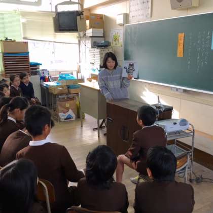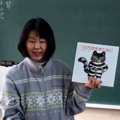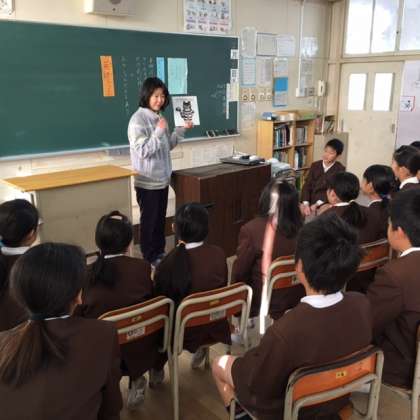 4年1組には、1年担任の越智先生が読み聞かせに来てくださいました。