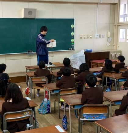 1年1組には、4年生担任の伊藤先生が読み聞かせに来てくださいました。