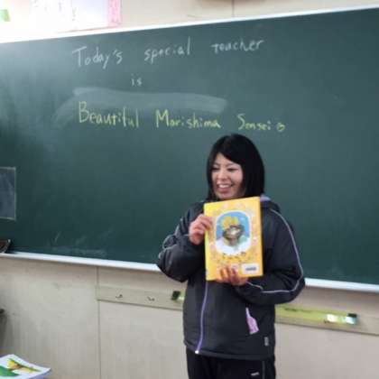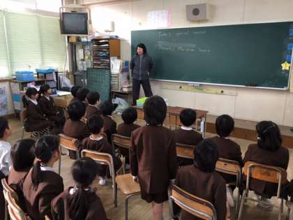 1年2組には、4年生担任の守島先生が読み聞かせに来てくださいました。