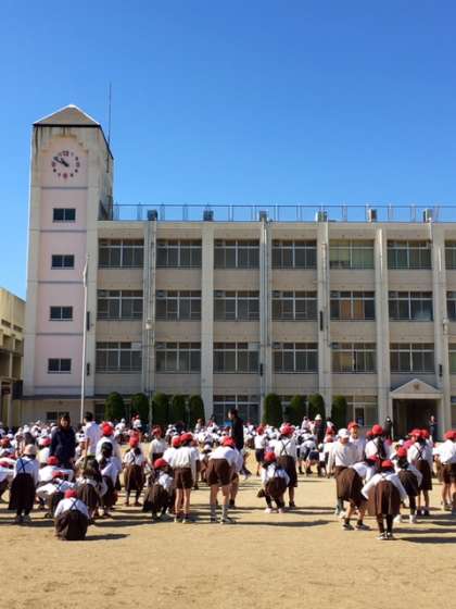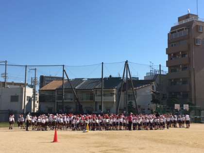 かけあしが終わり、整理体操をします。身体も温まり、脳も活性化され3時間目の授業に向かいます。