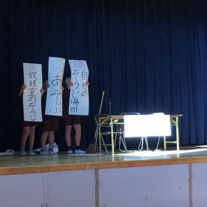 放送委員会の発表の様子です。放送委員会も三択クイズでわかりやすく説明してくれました。