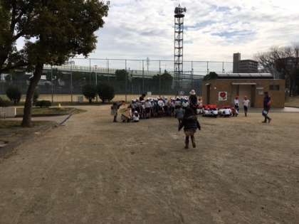 1・2年生が西淀公園に到着しました。間も無く出発です。