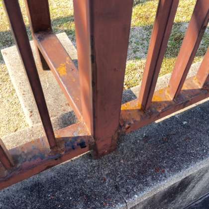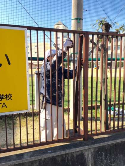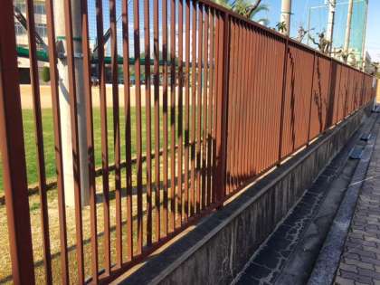 正門側柵が、経年劣化して錆が見られていました。本日から塗装業者さんにお願いして、錆落としと新しい塗装をお願いしています。