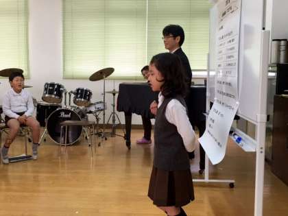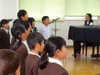 歌「トゥモロー」です。この曲は6年生を送る会でも、3年生全員で歌ってくれるとのことです。