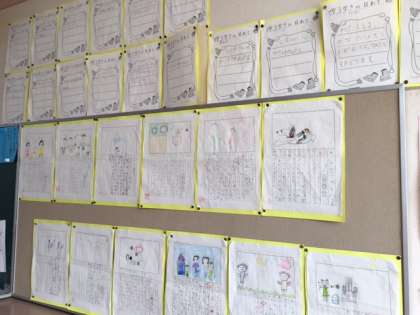 来校いただきましたらそれぞれの学級の授業もさながら、子どもたちの作品掲示も、是非ご覧ください。