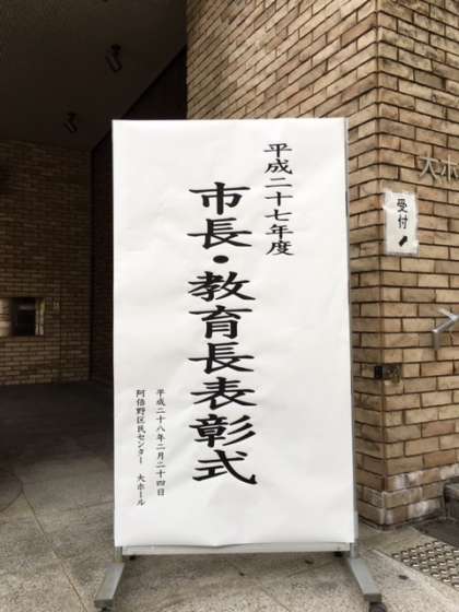 本日、2月24日(水) 阿倍野区民センターに於いて「平成27年度 市長・教育長表彰式」が開催されました。