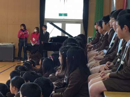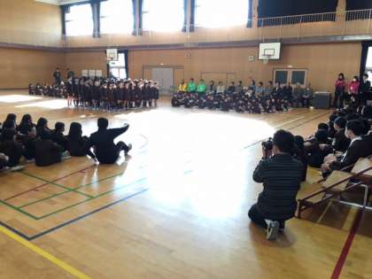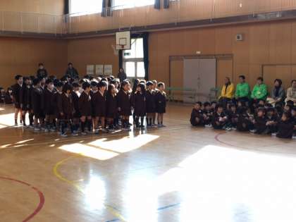 2年生から、6年生にお礼のことばと歌、ダンスのプレゼントです。