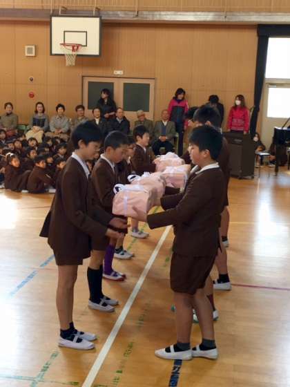 6年生から、1年生〜5年生にお礼のプレゼントをいただきました。