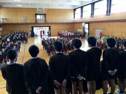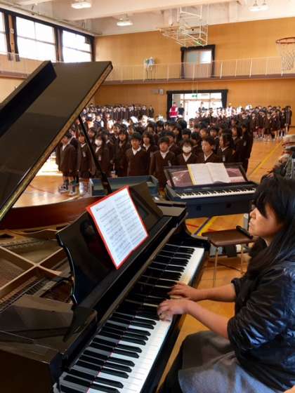 全校児童で、今年なかよし集会でみんなで歌った「ありがとうの花」を歌いました。