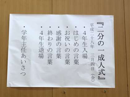 4年生が保護者の皆さんをお迎えして、2分の1成人式を行いました。