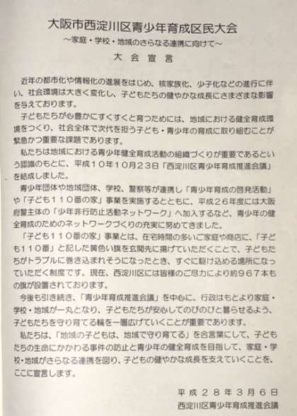 「西淀川区青少年の健全育成を考える区民のつどい」に行って来ました。